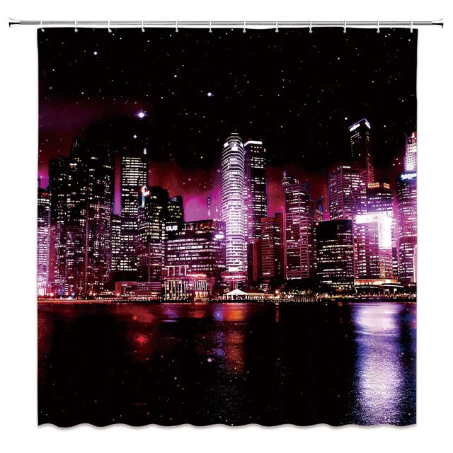 Forvandl dit badeværelse til en urban oase med vores fantastiske badeforhæng med byens lys om natten. Forestil dig at stå under bruseren, mens din fantasi føres væk til en pulserende metropol badet i lilla og pink skær under en stjerneklar himmel. Dette forhæng er ikke bare et praktisk element; det er et kunstværk, der inviterer til ro og refleksion midt i hverdagens travlhed. Perfekt til dig, der drømmer om at bringe et stykke af storbyens energi ind i dit hjem og skabe en unik atmosfære hver gang du træder ind i badet. Glem hverdagens stress og lad dig forføre af byens skønhed ved nattetide.