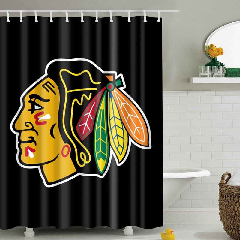 Forvandl dit badeværelse til et sted med personlighed og karakter med vores eksklusive badeforhæng. Hvis du elsker det ikoniske indianske høvding logo, så er dette badeforhæng designet specielt til dig. Det er mere end bare et praktisk element; det er en statement piece, der fanger øjet og tilføjer et unikt touch til dit hjem. Forestil dig at starte dagen med et smil, hver gang du ser dette kraftfulde og farverige design. Det sorte stof skaber en dramatisk baggrund, der virkelig lader logoet træde frem og gør dit badeværelse til et samtaleemne. Gør dig klar til at imponere gæster og glæde dig selv hver eneste dag med dette fantastiske badeforhæng.