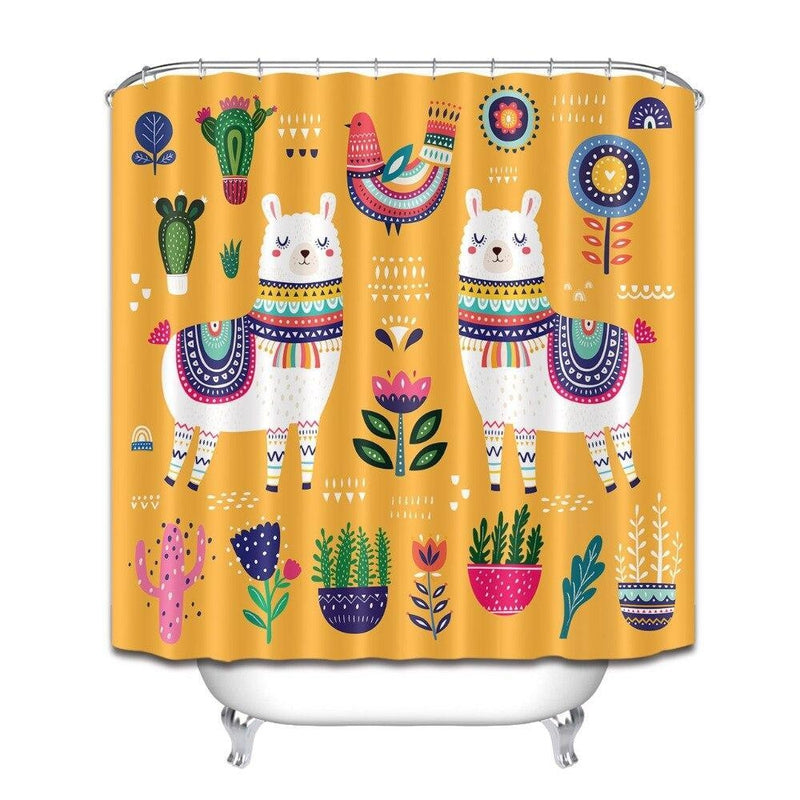 Skab dit drømmebadeværelse med dette Farverigt badeforhæng med lama motiv!