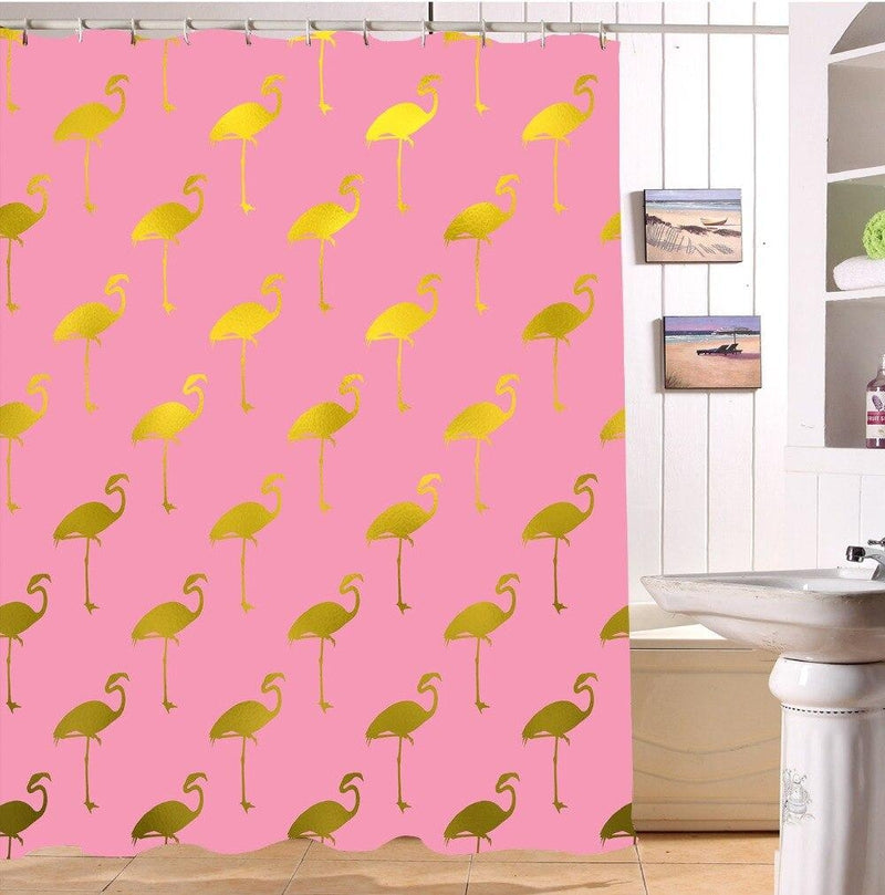 Forvandl dit badeværelse med et lyserødt badeforhæng med flamingoer i rosaguld