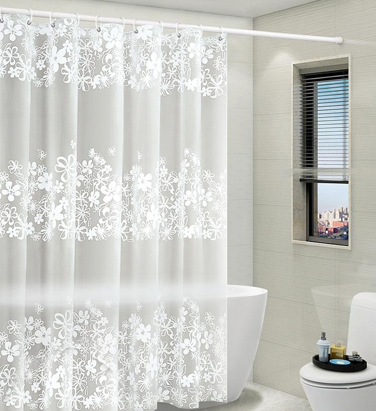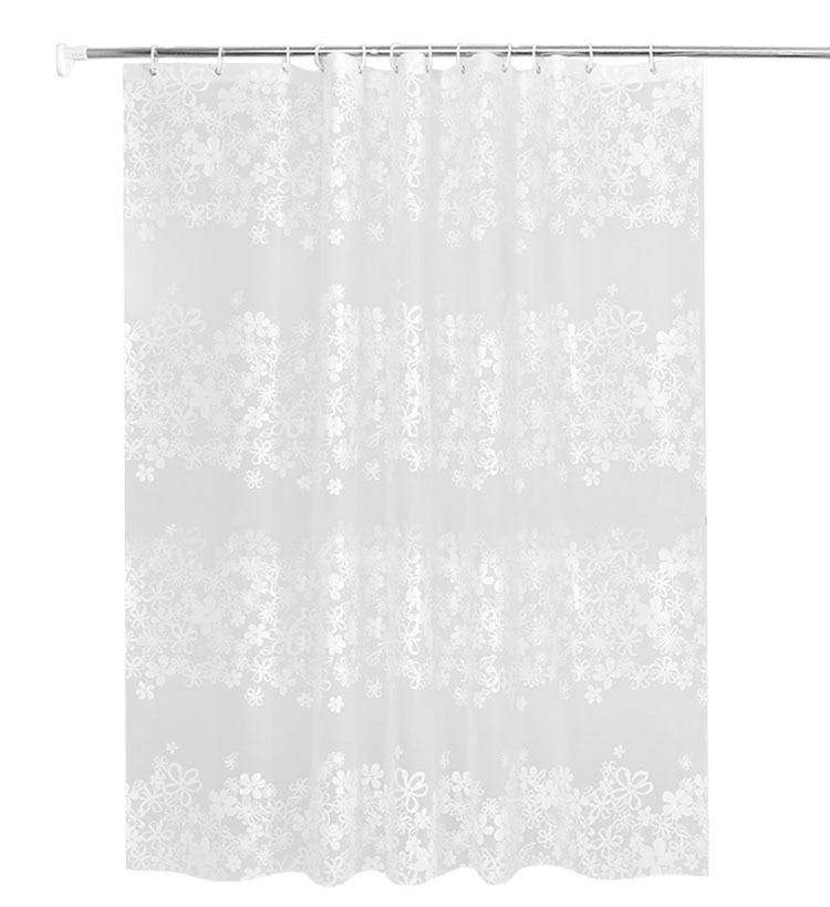 Gør dit badeværelse komplet med et Semi-transparent badeforhæng med hvidt blomstermønster